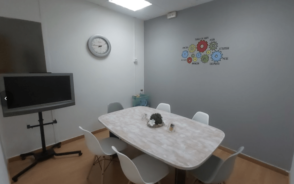 Sala para hasta 6 personas con todo lo necesario para una reunión, exposición, charla o showroom: tv para proyectar, pizarra y office para crear un clima de trabajo confortable.